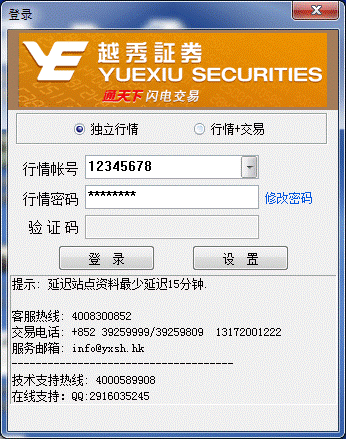 独立行情模式:不需要输入账号、密码登录,但只可以浏览港股行情。览港股行情。